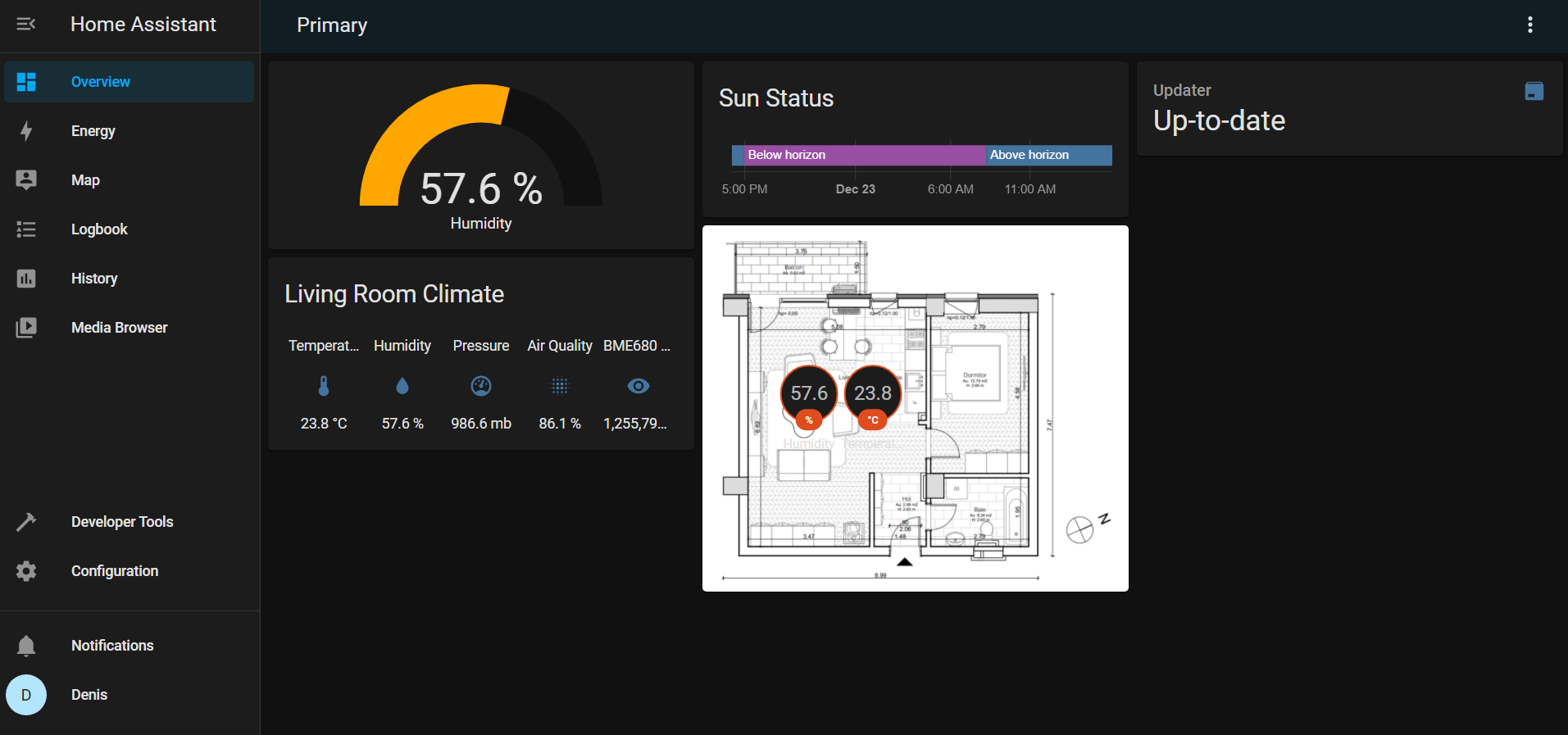 In future articles I will show you how to configure the BME680 enviromental sensor and how to activate the Apple Homekit integration. Until then, have fun exploring Home Assistant docs.