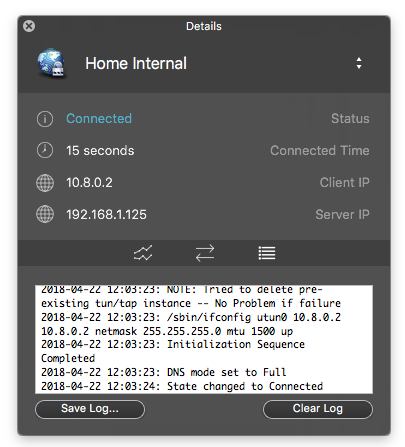 Viscosity successfully connected to my VPN server.